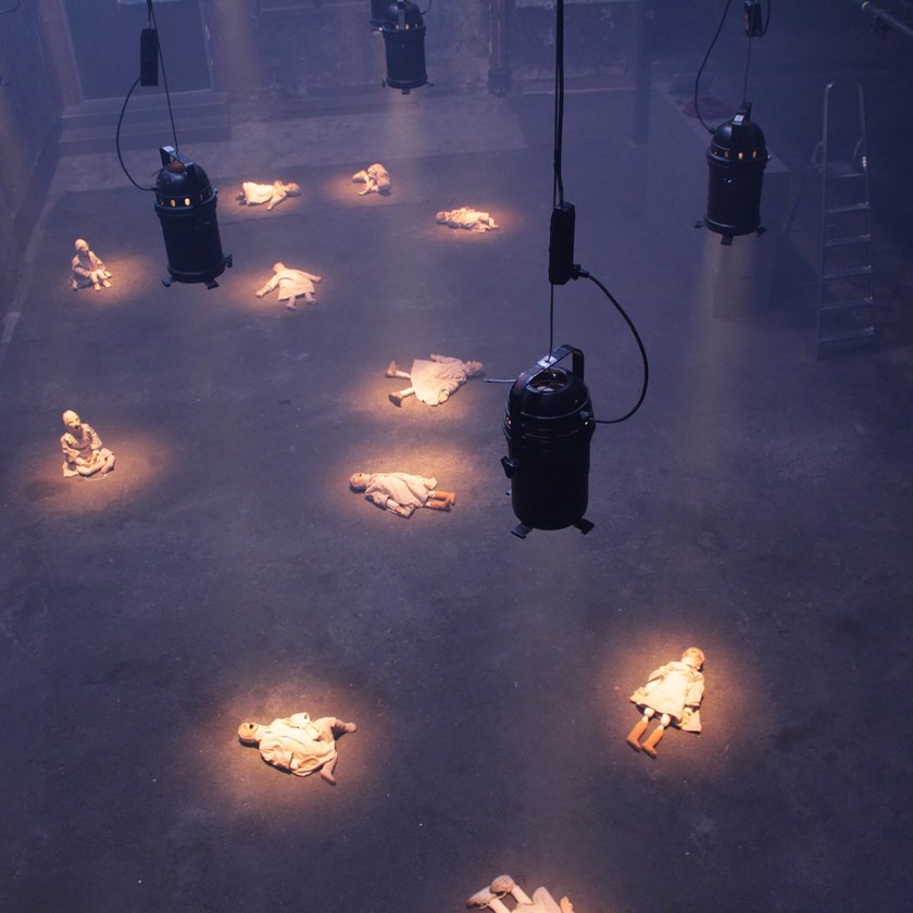 They scream, cry and comfort, threaten and plead, seduce and command, invoke and pray, explain, hypnotize, confess and terrorize. As an audience member, you can pick up and hold the puppets, answer them, care for them and manipulate them. Or just listen. Together with the other participants in the work, you create the conditions for the dolls to appear as part of your human community.