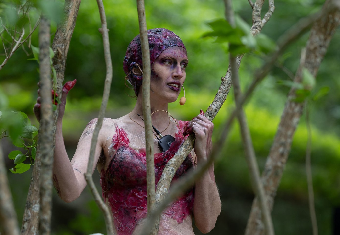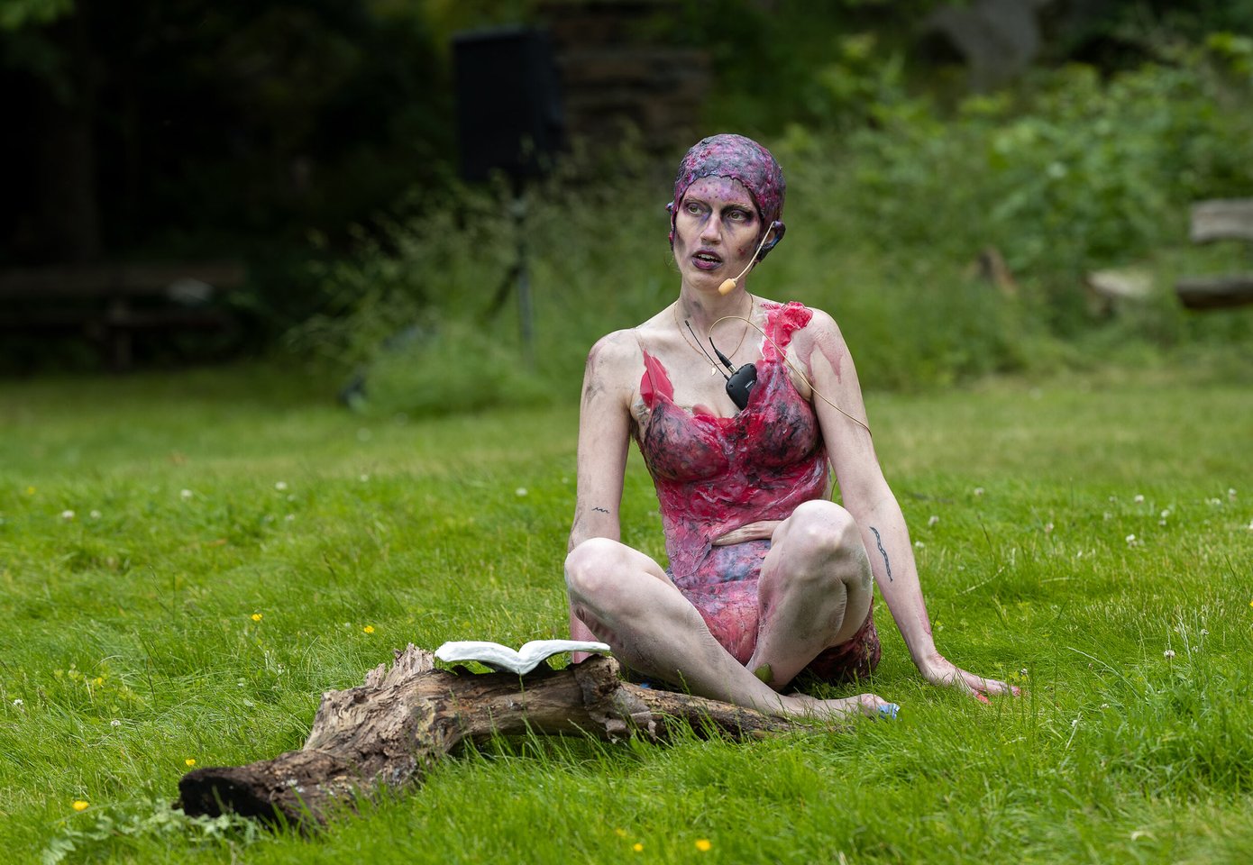 During the opening of the exhibition Forgotten Realms, artist Klara Ström presented the new performance piece Obsessed Play and I Play Obsessed, which brought the audience on a walk where myth and folk lore were shaken to form an alluring and at the same time repulsive creature.