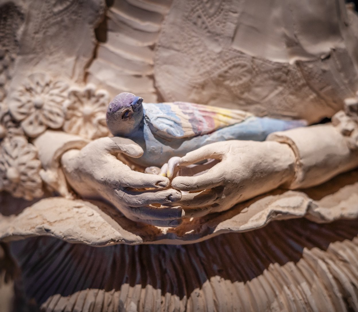 Valeria Montti Colque (born 1978 in Stockholm) is an artist with roots in Chile. Her work emerges in collage form – where drawing, watercolor, textile, ceramics and recycled materials are intertwined into stories of transformation and belonging. Layer upon layer, each piece bears traces of time and care. In the residency The Place That Holds the Breath, Valeria Montti Colque delwes into a bustling artistic universe of textile painting’s storytelling tradition, where the spiritual is intertwined with the rebellious, playful and poetic. Through new works that take their cue from the museum’s unique collections, she explores how a place can carry a living history, about life and death, through a rich imagery filled with symbolism and visual storytelling. The works will be presented in an exhibition at the Bonadsmuseum that opens on the National Day, June 6, 2026, and runs until the 31st of August.
