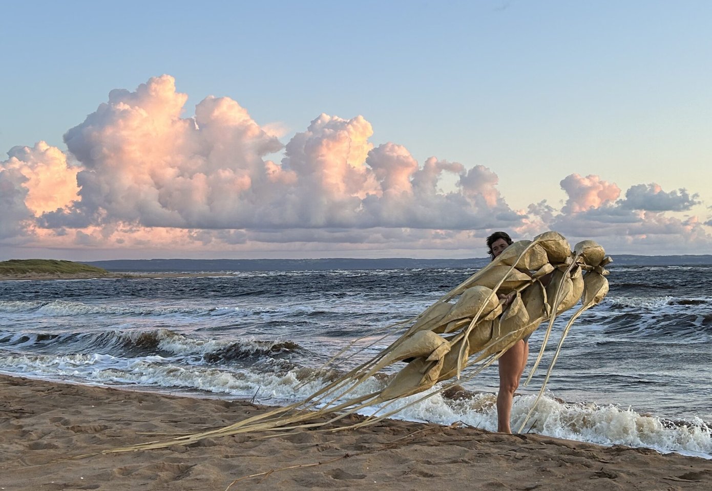 Kropp, gräs, bröd, säd och samhälle – hur hänger allt ihop? 90% av Hallands ekonomiska omsättning äger rum mellan E6:an och havet. På andra sidan motorvägen växer annat, till exempel solceller. Under mitt Art Inside Out-residens har jag ritat ut Hallands egen fertila halvmåne längs Laholmsbuktens sandfärgade kustlinje och sedan Crescent-cyklat från Båstad till Laxvik, ätit platt och väljäst limpa, badat fötterna i ett kvarnfall och känt doften av nymalet mjöl.