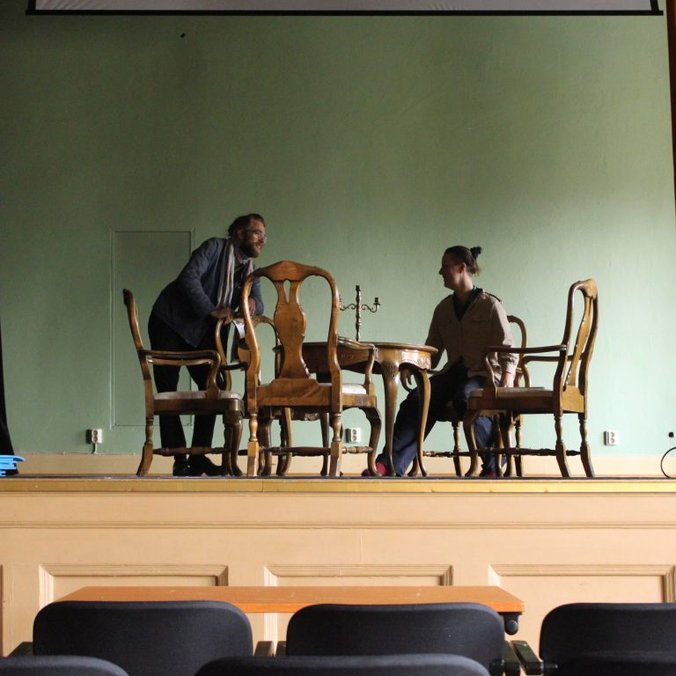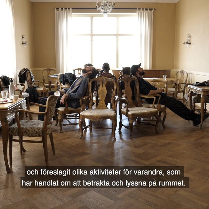 I nästan full ensemble sammanstrålade fem av Nyxxx-medlemmarna under det fyra veckor långa residenset. Kollektivet som ofta väljer att utmana teaterrummets givna ramar valde här att fokusera på själva teaterrummet och de gränser som finns mellan nivåerna scen, salong och balkong. De utvecklade metoder för att lyssna på teatern med alla sina rumsligheter och nivåer och varje vecka bjöd Nyxxx in laholmarna att lyssna tillsammans.